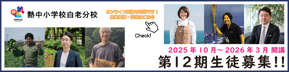 熱中小学校は「もういちど7歳の目で世界を…」をコンセプトに、全国から集まる様々な教諭陣の授業を通じて大人が学ぶ学校です。